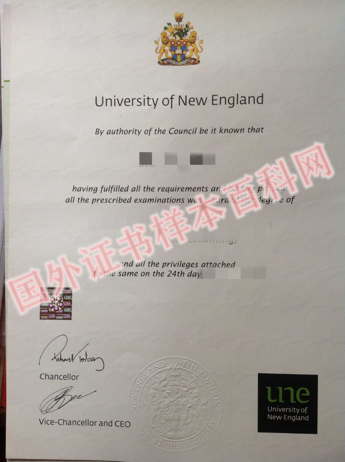 - 版本更新:澳大利亚新英格兰大学毕业证样式