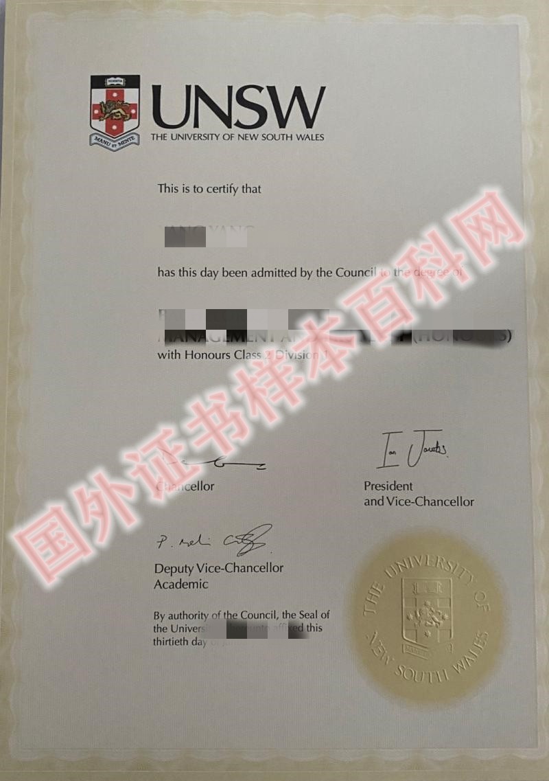 - 新版澳洲新南威尔士大学毕业证原版样式